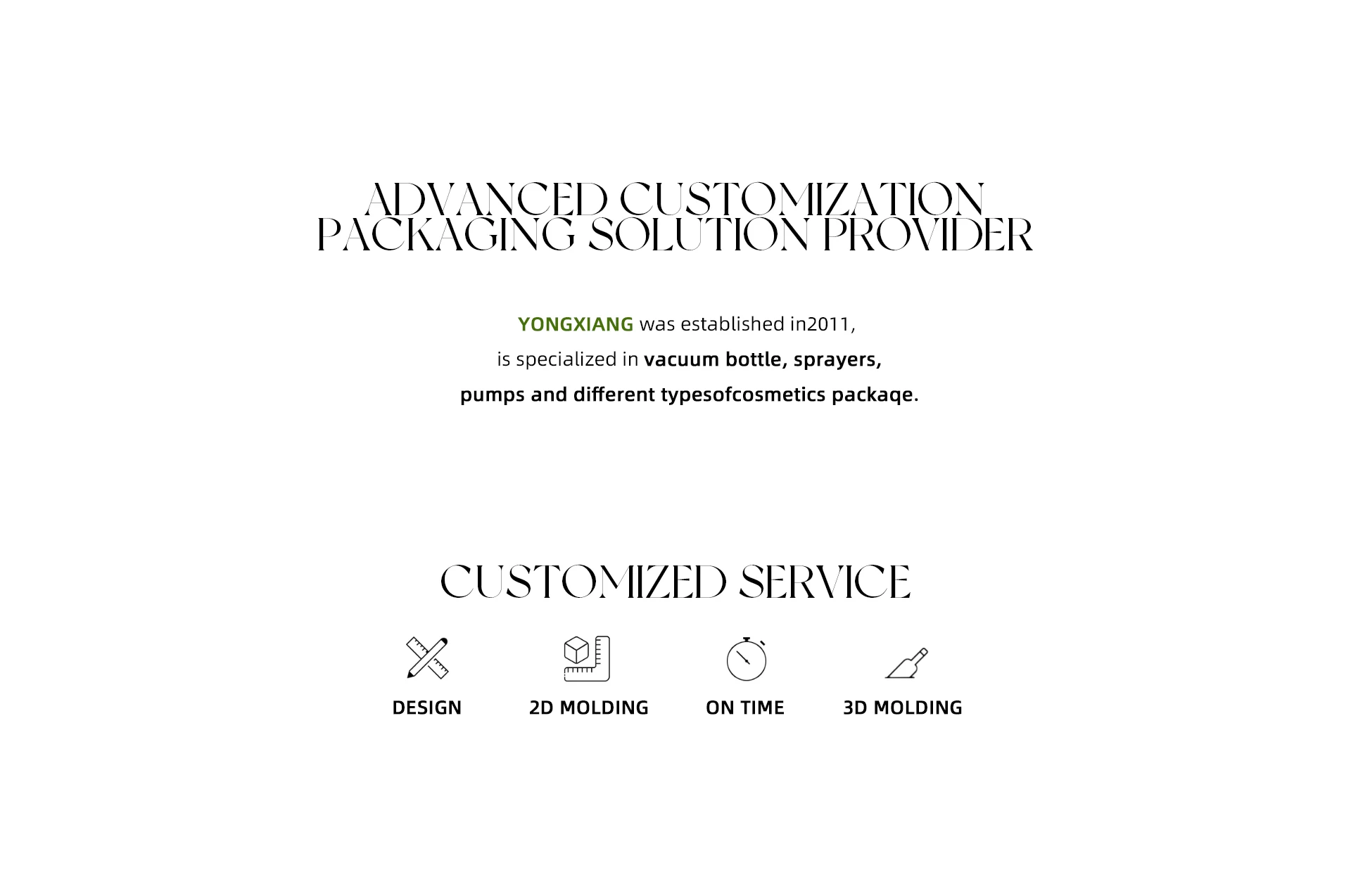Established in 2018, it‘s specialized in trigger sprayer, mist sprayer, nasal sprayer, oral sprayer, lotion pump, plant mister and different types of cosmetics package.